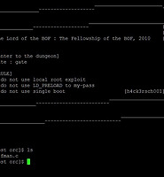 1 2 3 4 5 6 7 8 9 10 11 12 13 14 15 16 17 18 19 20 21 22 23 24 25 26 27 28 29 30 31 32 33 34 35 36 37 38 39 40 41 42 43 44 | #include <stdio.h> #include <stdlib.h> extern char **environ; main(int argc, char *argv[]) { char buffer[40]; int i; if(argc < 2) { printf(“argv error\n”); exit(0); } // here is changed! if(strlen(argv[0]) != 77) { printf(“argv[0] error\n”); exit(0); } // egghunter for(i=0; environ[i]; i++) memset(environ[i], 0, strlen(environ[i])); if(argv[1][47] != ‘\xbf’) { printf(“stack is still your friend.\n”); exit(0); } // check the length of argument if(strlen(argv[1]) > 48) { printf(“argument is too long!\n”); exit(0); } strcpy(buffer, argv[1]); printf(“%s\n”, buffer); // buffer hunter memset(buffer, 0, 40); } | cs |